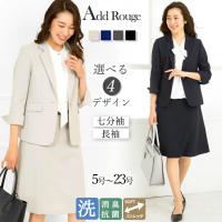 選べる袖丈 長袖or七分袖! 夏を含めた3シーズン対応、2点セットスカートスーツ。 ジャケットの背中部分の裏地を省いた裏地無し仕様なので、 夏でも快適に着こなしていただけます。 ピークドラペルデザインで、スーツスタイルが華やかな印象に。 ご家庭の洗濯機で洗えるウォッシャブル素材なので、常に清潔な状態を保つことができます。 洗濯後も形が崩れにくいよう、形態安定加工が施されています。 美しいシルエットのまま、終日着用していただけます。 柔らかいストレッチ生地を使用しているので、着心地も抜群です。 また、夏に特にうれしい抗菌防臭機能付きで、汗などの不快なニオイをシャットアウト。 夏のビジネスシーンの必須アイテムです。 ―――――――――――――――――――――――――――――――――――― 全商品あすつく対応で発送が速い! ・当店は365日年中無休で(土日祝日含む)発送しております。 ・当店は全品があすつく対応です。 ・ご注文を15時までに頂ければ当日発送、最短で翌日午前中のお届けが可能です。