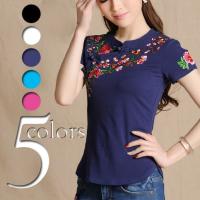 レディース トップス チャイナ カットソー シャツ 半袖 花柄 nn04 2,990円 |