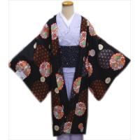 長羽織 洗える 女性用 着物 黒地 大輪花紋雪輪 フリー 7,300円 |