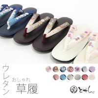 リピートのお客様も多い大人気のウレタン草履、鼻緒が特徴的なお洒落な草履です。 足元が華やかになると大変好評です。 さらにかわいいだけでなく、ウレタン草履はとっても軽くて歩きやすいと大評判。 水にも強いので雨の日にも快適に使っていただけます。 サイズ 約24×8.5×3.5cm 色 1.白×ピンク(刺繍) 2.こげ茶×ベージュ(刺繍) 3.紺×水色(刺繍) 4.紫×ベージュ(刺繍) 5.グレー×紫(刺繍) 6.黒×藍(ぼかし) 7.紫(ぼかし) 8.紫×ベージュ(ぼかし) 9.紺×水色(ぼかし) 10.こげ茶×ベージュ(ぼかし) 11.グレー×ベージュ(ぼかし) 12.濃紫×えんじ(ぼかし) 13.白×ピンク(ぼかし) ※生地の裁断箇所により、グラデーションの出方が画像とは違う場合がございますのでご了承ください。 素材 台:PVCポリウレタン 鼻緒:ポリエステル ウレタンソール ※実物と画像に色の誤差が生じます |