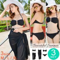 パレオ バンドゥ ビキニ 3点セット 送料無料 水着 レディース 体型カバー 黒 3,427円 |