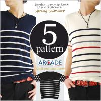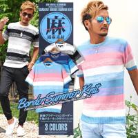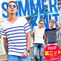 サマーニット メンズ サマーセーター 選べる2タイプ 半袖 無地 ボーダー柄 夏服 送料無料 2,495円 |