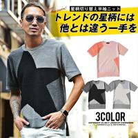 春夏 サマーニット メンズ パネルボーダー Vネックニット カットソー 半袖 1,980円 |