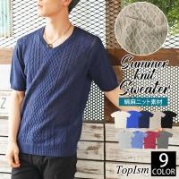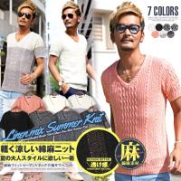 サマーニット メンズ ニット 半袖 Tシャツ 無地 ケーブルニット Vネック 綿麻 カットソー コットン リネン セーター 春夏 2,499円 |