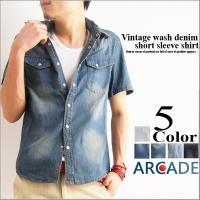 デニムシャツ 半袖 メンズ カジュアルシャツ ヴィンテージウォッシュ 1,998円 |