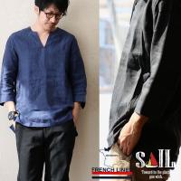 七分袖 シャツ プルオーバー キーネック 麻100% フレンチリネン ショートカフス (セイル) SAIL 5,292円 |