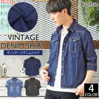 デニムシャツ メンズ 7分袖 半袖 シャツ ユーズド加工 デニム ビンテージ加工 ストレッチ ダンガリーシャツ 七分袖 ウエスタン 1,999円 |