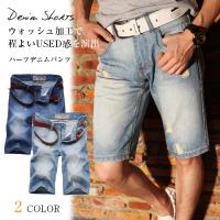 ハーフパンツ メンズ デニム インディゴ ダメージ ストレッチ ショートパンツ 3,990円 |