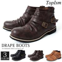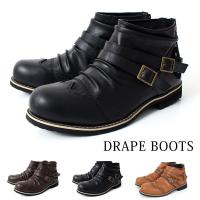 エンジニアブーツ ショート ドレープ PUレザー メンズ ドレープ サイドジップ ベルト 靴(ブラック黒) 5183 5,832円 |