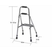 ■サイズ/幅47×奥行43.5×高さ65〜75cm、折りたたみ時:幅47×奥行12×高さ67cm、ハンドル内幅:36.5cm ■重さ/2.5kg ■材質/本体:アルミ、グリップ:PVC、先ゴム:合成ゴム、その他樹脂部:PE ■最大使用者体重/100kg ■生産国/台湾 ■標準機能/折りたたみ式、高さ調節(5段階/2.5cmピッチ) ・アルミフレームを採用。 軽量で丈夫、使い勝手の良い歩行器です。 ・車で持ち運んだり、収納するのに便利な折りたたみ式です。 ・小柄の方でも使いやすいミニタイプ。 ・小柄な女性を中心に使用しやすい設計になっています。 ・幅が狭いタイプです。 ・折りたたむと収納に場所をとりません。