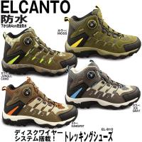 送料無料!! お取り寄せとなった場合、お時間を1週間前後いただく場合がございます ELCANTO(エルカント)の高機能のトレッキングシューズです。 ヒモの代わりにワイヤーで調節するタイプですので、しばらなくていいタイプです。 インソールは足のアーチをサポートしますので、 クッションがいいだけでなく、履いていて快適です。 インナーに透湿撥水素材を使用しているので 湿気を逃して水をはじくアウトドアにはもってこいのブーツです。 サイドのディスクを回すだけで、締めたり、ゆるめたり。 ハイカットで足首をしっかりホールド、悪路でも安心です。 ソール下部4cmは完全防水です。 カカトをしっかりとホールドするヒールカウンター 「さあ、登るぞ」という時も、疲れて脱ぐ時も、ディスクを回すだけなんです。 もちろん、歩いていて、余ったヒモを踏んだりすることもありません。 サイズ:23.0cm,23.5cm,24.0cm,24.5cm,25.0cm,25.5cm,26.0cm,26.5cm,27.0cm,28.0cm カラー:Sunburst,JungleCamo,IceGray,Moss アッパー素材:合成皮革+メッシュ+ラバー ソール素材:合成ラバー素材 ご使用の際、厚手のソックス等を図れる場合は、更に0.5cmアップが推奨となります。