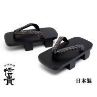 登録商標「信貴」は大和の履物 大和の国、信貴山の麓にいにしえより伝わる技法と 熟練した職人が心を込めて作りあげた逸品です。 シックな黒塗りの台に印伝風の鼻緒が付いた高級感のある2枚歯下駄....... |
