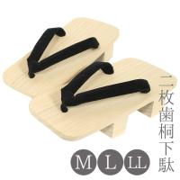 男物二枚歯下駄 M〜LL 夏の浴衣や甚平など着物スタイルにおすすめの紳士用下駄のご紹介です。 <BR><BR>もちろん普段使いにもおすすめです。 <BR>鼻緒は定番の黒になります。 ■サイズ (M /L /LL) [サイズ] 24.0/25.4/26.0 [幅]11.5/11.5/12 [高さ]4.6/4.6/5.0(cm) ■素材 台:桐はなお:ポリエステル100% 木目柄や色合いにつきましては画像と違う場合があります。