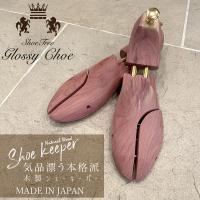 -特長- 高級木材レッドシダーで作られた、木製シューキーパー(シューツリー)です。 靴の型崩れを防ぐと共に、美しいフォルムを保ちます。 一日履いた靴の湿気を除湿すると同時に、香りが靴の臭いを中和してくれます。 甲の部分が分かれているスプレッダープレートにより靴幅に関係なく使用できます。 -用途- 靴の除湿・ニオイの中和・型くずれ防止 -使用法- 左右がありますので、確認してからセットするようにして下さい。 帰宅後すぐにセットするのが効果的です。 -ご使用上の注意- 箱内部に付着しているシミ状に見えるものは、レッドシダーの樹液に含まれている タンニンオイルです。 皮膚や靴に付着しても無害のものですのでご安心くださいませ。 -お願い- このキーパーは100%天然シダーを削り出して作られています。 そのため、製作途中に刃の当たる角度などにより、 表面に小さな窪みや小キズが見受けられる場合もございますが、 ご使用上の影響は全くございません。 天然木の持つ性質ということで何卒ご理解を頂きますようお願い致します。