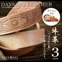 『サマーセール対象商品』本革サドルレザーベルト フラワーカービング カービングベルト バックルベルト 牛革ベルト ヌメ革 メンズベルト バックル 1,980円 |