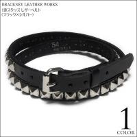 バンビ セレクトアイテム BRACKNEY LEATHER WORKS - ブラックニーレザーワークス [ メンズ ユニセックス ] スマートな印象のシングル スタッズベルト!! 手堅い人気のBRACKNEY LEATHER WORKSのスタッズベルト、 細身のブラックレザーにシルバーのピラミッドスタッズ、ほどよい厚みのあるレザー、無骨なカッコよさを保ちつつ、1連タイプなのでハードすぎずスマートな印象なのがポイント☆ ベルト裏はスタッズの留具が見える作りで、スタッズは約1.2&times;1.2cmです。 パンク、ロックな感じにはもちろん、キレイめにもカジュアルにも合わせやすい、デニムに、カーゴ、ショーツなど、好きなスタイルに合わせて使ってね。 *物によってはベルトの裏にプリントシミなどが多少付いています。 ご了承ください。 サイズ:34インチ、 全長 約104cm、ウエストサイズ 約84〜94cm、幅 約1.7cm、厚み約3〜4mm、ホール数8個、 素材:レザー(本革) *全長は、バックルを含んだ長さです。 *ウエストの最短、最長はベルトを巻いた状態で内側から一週させて測ってます。 *バックルは取り外しできません。 *ベルトのカットは出来ない作りです。