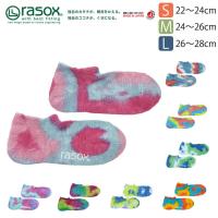 足の負担が少ないL字型の形をしたソックスを開発し、とことんまで足元の快適さを追求しているメーカーです。 商品は全て日本製にこだわり、丁寧な作りをしている人気のブランドです。 L型のラソックスの靴下は、足を包み込むような履き心地を実現しました。 これは、疲れにくく、靴下がずれにくい一番の形なのです。 一度は履いたらやめられないラソックスのL型ソックスを是非お試しください。 L型ソックスは、ラソックスだけです。 (特許取得) 男性にも女性にもお使いいただけます。 プツプツとしたネップが織り込まれたスラブ素材の綿を使用したタイダイ染めのスニーカー丈モデル。 つま先から踵まで足底をパイル調に編んでいるのでクッション性もよく、脱げることがないので快適に履いて頂けます。 プレゼントとしても人気です! 採寸情報(:サイズ) S:22〜24cm M:24〜26cm L:26〜28cm |