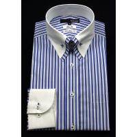 スリム 長袖 ワイシャツ 形態安定 クレリック ワイド 綿100% 白×サックスストライプ 4,212円 |