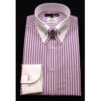 スリム 長袖 Wガーゼ ワイシャツ 形態安定 クレリック ボタンダウン 綿100% パープル×白ストライプ 4,212円 |