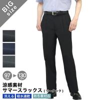 大きいサイズのクールビズスラックス ウエスト100cmから130cm ■仕様 ・ポリエステル100%(涼感仕様) ・ツータック ・ご家庭の洗濯機で洗えます ・ブラック、ネイビー、スレートグレー ご注文直後に自動配信されるメールには値引き前の金額が案内されますが、後ほど当店より送信する受注メールで値引き後の金額をご連絡します。 100cm,105cm,110cm,115cm,120cm,125cm,130cm メンズ,サマースラックス,,ストレッチ,洗濯可,洗える,ウォシャブル,ビジネススラックス,着こなし,クールビズ,COOLBIZ,ブラック,黒,ネイビー,濃紺,スレートグレー 忙しいビジネスマンに最適!お手入れ楽々スラックス |