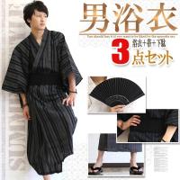 浴衣 メンズ おまかせ雪駄付3点セット紳士しじら織浴衣ワンタッチ帯付 M L LL 3カラー 4,212円 |