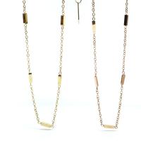 サイズ チェーン長さ:約40cm、太さ1mm(極細) プレート:7×1mm 商品説明 チェーンの中央に5粒プレートが連なったシンプルなネックレスとなります。 色はゴールド・ピンクゴールドからお選びくださいチェーンの厚みは1mmと大変細く人気のネックレスです Stain→傷・汚れLess→少ない、が由来となっており 「錆びにくい鋼」といわれている合金の一種です。 アクセサリーなどは加工のしやすいSUS316Lという呼称のステンレスを使用しますが、 この合金にはニッケルやクロム、モリブデンなどのアレルギーの主な原因となる金属が含まれています。 しかし合金の配合により耐食性が高く、肌に触れてもアレルギーを起こしにくいため、 金属アレルギーをお持ちの方にもお使い頂ける「低アレルギー素材」と言われています。 アレルギーにつきましては個人差・体調や環境による程度の違いがございます。 皮膚に異常を感じた時や、汗を多くかくなどアレルギー症状が現れやすい状況では ご使用をお控えくださいますようお願い申し上げます。