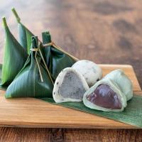 石川県能登産大納言小豆のつぶあんを、よもぎの風味をつけた加賀の生麩でくるんだ麩まんじゅうです。 冷蔵庫で冷やしてお召し上がりください。 笹に付着してはがれにくい場合は、さっと流水にくぐらせると簡単にはずれます。
