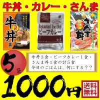 送料無料 牛丼・ビーフカレー・さんま丼各1袋 5食セット ポイント消化 ポッキリ セール 1,000円 |