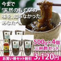 限定セット割引 天然太もずく(塩蔵)2kg(500g×4) 沖縄県久米島産&やみつき三杯酢310ml 3,120円 |