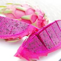 ドラゴンフルーツ(ピタヤ)とは〜 ドラゴンフルーツは正式名をピタヤと言い、さっぱりとした味わいとシャキシャキした食感が特徴のトロピカルフルーツです。 ピタヤは果皮と果肉の色によって5種類あり、この中でテレビでも放送されたピタヤボウルに用いる品種がレッドピタヤとなります。 その豊富な栄養から健康食品として有名になり、バナナやマンゴーをトッピングして作ったピタヤボウルは日本でも人気となった彩り豊かなヘルシースイーツです。 健康・美容のトロピカルフルーツ! ピタヤは豊富な栄養が含まれており、アサイーに並ぶ健康食品として有名です。 バナナの65倍もの食物繊維、マグネシウム、カリウムや葉酸が顕著で、特にマグネシウムは果物の中でトップの含有量となっております。 その高い栄養価から美容やアンチエイジング、健康に効果が期待される果物です。 ピタヤの糖分はブドウ糖なので、そのまま食べる際はレモン汁をかけると甘みをより感じることが出来ます。 ピタヤボウルだけでなく、サラダやスムージーに用いるのもおすすめです。 追熟をしないため、鮮度のあるうちにお召し上がり下さい。