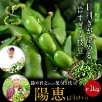 私たちも目利きが驚くほどの旨さ。 岡永一雄さんの作る枝豆「陽恵(ようけい)」です。 岡永さんは市場では有名な腕利き野菜生産者。 その岡永さんが今一番力を入れているのが枝豆です。 こだわりの品種「陽恵」を、糖度が最ものっている早朝の4〜6時に収獲。 収獲した物を鮮度を保つために予冷作業をして、その日のうちに出荷いたします。 鮮度感抜群の葉付・枝付状態お届け。 さやの重量で約350g前後に調整して3袋セット! 約1キログラムお届けします。 1.さっと水洗いをした後、塩を少々ふり、手の平で豆をこするように揉んで、しばらく置くのがポイント。 2.たっぷりの水を沸騰させ、塩もみをした枝豆をそのまま投入。 3.再沸騰から2〜3分を目安ザルにあげお湯をしっかりと切ります。 うちわ等で熱をとると風味豊かに色合いもよく仕上がります。