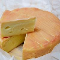 農家製のルブロションです。 「ルブロション」は、「コンテ」「ロックフォール」「カンタル」等と共に人気の高く生産量も多いチーズです。 14世紀、オート・サヴォワのトーヌの谷でルブロッションは生まれました。 牧場主の目をごまかすために、一度で乳を全部搾り切らず、二度目に搾った乳から造られたという由来があることから、「再び搾る」という意味の名前が付けられたと言います。 薄いオレンジがかった黄色。 うっすらとかびが生えており、中身はクリーム色。 滑らかにきめが詰まっており全体にむっちりとやわらかい。 ところどころに穴が空いています。 プレスしてから水で洗っているので分類は圧搾タイプでもありウォッシュタイプでもあります。