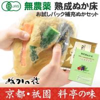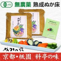 無農薬・無添加にこだわった、トマト・干し椎茸・昆布・かつおなどで、ひと味違う祇園料亭のお味ひと味違う京都祇園料亭のぬか漬けが手軽に自宅でできる乾燥タイプのぬか床500gです。 「ぬかの素」をフタ付きの容器に移し、水またはぬるま湯を加え、しばらく発酵を待つことで、超熟成ぬか床「ぬかの花」に変身!誰でも気軽にぬか漬け作りをスタートできます。 「ぬかの花」の補充用としても最適です。 ■原材料: 有機JAS無農薬米の玄米絹ぬか・トマト・みかん・かつお・昆布・干し椎茸・醤油・天然海塩・酒粕・実山椒・天然乳酸菌・天然酵母・天然酵素・米麹 ※醤油に含まれる大豆は遺伝子組み換えでない大豆を使用しています。 詳しい説明書つきで、初心者の方にも安心して初めていただけます。 ご不明な点は当店の「漬けものマイスター」が丁寧にアドバイスします! 今日からあなたもぬか漬け生活始めてみませんか〜 ※こちらの商品はメール便でのお届けとなりますので、代金引換と配達日時指定はご利用いただけません。 商品はご自宅のポストへ投函されますので、ご不在時でも安心です。