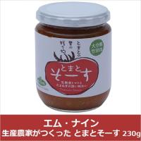 メーカー名:エム・ナイン (AB8P0)<br>ブランド名:エム・ナイン (M9AAA)<br>容器の種類:瓶<br>原産国:日本<br>産地:九州<br>県名:大分県<br>原材料:トマト、タマネギ、セロリ、ニンニク、塩、胡椒、ナツメグ、オリーブオイル、調味料(アミノ酸等)<br>内容量:230g<br>ご注意:直射日光を避け、常温で保存して下さい。 <br><br>大分県竹田市のトマト農家が、忙しいお母さんにかわって、手間暇かけて作った美味しいトマトソースです。 <br>とまとそーすが、ご家庭の食卓を一流店の味に変えてくれます。 <br>エム・ナインが作ったニンニクや玉ねぎを使用しています。 <br>パスタやピザ、トースト、煮込みや鶏肉料理におススメです。