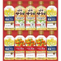 コレステロールを下げる特定保健用食品の健康サララ、ビタミンEを強化したヘルシーなキャノーラ油で、栄養機能食品のさらさらキャノーラ油健康プラス、コレステロール0、ビタミンEたっぷりの栄養機能食品のべに花油といった健康油を詰め合わせたギフトセットです。
