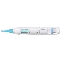 採血用穿刺器具(穿刺ペン) 表皮の下に集まる毛細血管を、パイプ状針で効率的にキャッチ。 皮膚の薄い人には、細く、薄く、浅く。 深度ハートマーク はわずか0.3mmと浅く、 指先に入っている体積はファインタッチディスポ30Gと 同程度※。 さらに、針先端部を薄くカットしたデザインです。 皮膚が厚い人には、広い刃面を活かし、「切る」感覚で。 最も深い深度4でも皮膚を押し広げず、パイプ状針ならではの広い刃面でスムーズに「切る」感覚。 皮膚が硬く厚い患者さんにも、血液が出しやすいように設計しています。 本品をご使用の際は必ず「メディセーフ針(ファインタッチ・ファインタッチII専用)」をご使用ください。