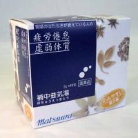 | 補中益気湯(ほちゅえきとう) 松浦漢方株式会社 体力虚弱で、元気がなく、胃腸の働きが衰えて、疲れやすいものの次の諸症: 虚弱体質、疲労倦怠、病後・術後の虚弱、食欲不振、ねあせ、感冒 1日3回、食前1時間、温湯で服用 成人(15歳以上) 1回1 包(2.0g) 15歳未満7歳以上 1回2/3包(1.3g) 7歳未満4歳以上1回1/2包(1.0g) 4歳未満2歳以上1回1/3包(0.7g) 2歳未満1回1/4包(0.5g以下) 本品3包(6.0g)又は6.0gは ニンジン………………2.0g タイソウ………………1.0g ビャクジュツ…………2.0g サイコ…………………1.0g オウギ…………………2.0g カンゾウ……………0.75g トウキ…………………1.5g ショウキョウ………0.25g チンピ…………………1.0g ショウマ………………0.5g |