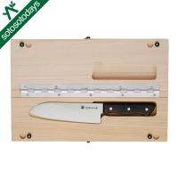 美味しい料理を彩るために、快適な調理作業は欠かせません。 2つ折りの収納時に包丁を中に納め、安全に持ち運びにも便利なマナイタセットです。 コーナーに滑り止めを装着したことで、がたつくことなく安全にカット作業に集中できます。 Lサイズはアイアングリルテーブルに1ユニットとしてセットできるようシステムデザインが施されています。 [アウトドア 調理 キッチン] |