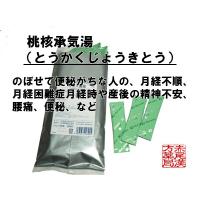 | 桃核承気湯(とうかくじょうきとう) 松浦漢方株式会社 体力中等度以上で、のぼせて便秘しがちなものの次の諸症: 月経不順、月経困難症、月経痛、月経時や産後の精神不安、腰痛、便秘、 高血圧の随伴症状(頭痛、めまい、肩こり)、痔疾、打撲傷 1日3回、食前1時間又は空腹時、温湯にて服用 大人(15才以上)1回 1 包(2.0g) 15才未満7才以上1回2/3包(1.3g) 7才未満4才以上1回1/2包(1.0g) 4才未満2才以上1回1/3包(0.7g) 2才未満1回1/4包(0.5g以下) 本品3包(6.0g)又は6.0gは トウニン………………2.5g ダイオウ………………1.5g ケイヒ…………………2.0g カンゾウ……………0.75g 上記より製した桃核承気湯水製エキス…………2.15g 硫酸ナトリウム……………………………………1.0g |