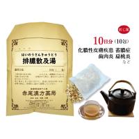 ■排膿散と排膿湯を合方した製剤で化膿症に使用します。 ■疼痛を伴う化膿性の皮膚および口腔、咽喉の腫物に対し、方名の通り排膿の目的で用いられます。 ■全体として清熱、解毒、きょ痰排膿の働きをもつ方剤です。 ■皮膚の腫れや発赤をしずめ、治りをよくします。 ■化膿性の皮膚病のほか、歯肉炎や歯槽膿漏などにも用います。