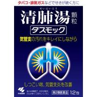 パッケージ・商品内容等は、予告なく変更する場合も ございます。 予めご了承ください。 当店では複数の店舗で在庫を共有しております。 在庫切れの場合もございますので予めご了承ください。 「ダスモック 12包」は、タバコや排気ガスなどで、 せき・たんが続く方のお薬です。 漢方処方『清肺湯(せいはいとう)』が気管支粘膜の汚れを 取り除きながら、せき・たんをやわらげます。 気管支の状態を正常に近づけ、呼吸をラクにしていきます。 医薬品。 体力中等度で、せきが続き、たんが多くて切れにくいものの 次の諸症:たんの多く出るせき、気管支炎 小林製薬株式会社 (咳たん痰せき気管支炎炎症清肺湯せいはいとう漢方だすもっく) |