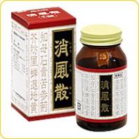 | 消風散(しょうふうさん) 一元製薬株式会社 体力中等度以上の人の皮膚疾患で、かゆみが強くて分泌物が多く、ときに局所の熱感があるものの次の諸症: 湿疹、皮膚炎、じんましん、水虫、あせも 大人1回4〜6錠 7〜13才迄1回2〜3錠 1日3回、食前1時間又は空腹時服用 本品100錠中 日局 トウキ末・・・・2.8g日局 クジン末・・・・0.9g 日局 ソウジュツ末・・1.9g日局 カンゾウ末・・・0.9g 別紙規格ジオウ末・・・2.8g別紙規格ボウフウ末・・1.9g 別紙規格センタイ末・・0.9g別紙規格チモ末・・・・1.5g 別紙規格ゴマ末・・・・1.5g別紙規格ケイガイ末・・0.9g 別紙規格ゴボウシ末・・1.9g別紙規格セッコウ末・・2.8g 別紙規格モクツウ末・・2.4g自社製別紙規格水性エキス・2.4g |