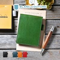 本革の風合いたっぷりなナチュラルレザー雑貨 BlancCouture(日本製) しっかりとした厚さのヌメ革を全面に使い、皮革専用糸で丁寧に縫製致しました。 使い込むほどにヌメ革特有の美しい色艶が増し、丈夫で末永くお使い頂けるメモパッドです。 デスクに置いても本革ならではの高級感たっぷりで、いつでもサッとメモが取れます。 また、薄くてシンプルなのでそのまま鞄に入れて携帯用メモとして持ち歩くのにも最適です。 こちらの商品は「ロディアNo.11サイズ用」のメモパッドとなります。 色は6色よりお好みの色をお選びください。 (見本写真は地中海オレンジ) ※こちらの商品はメール便での発送が可能です。 (プレゼントラッピング有りの場合は不可) ※本商品はメモパッドのみでございます。 ロディアメモは付属致しません。