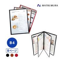 商品名メニューファイルB48ページ 商品番号h51410(黒)/h51420(茶)/h51430(赤) 材質窓部再生PET/フチ合成皮革PU カラーフチの色が黒と茶と赤から選択できます。 入数1冊 内寸透明部分の寸法W262mm×H370mm 中紙のサイズB4サイズの中紙W257mm×H364mmが入ります。