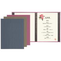 ※こちらの商品は、商品到着後にレビューを書いていただくお約束のもと、表紙の名入れをサービスさせていただいております。 規格:A4対応 仕様:4ページ仕様 木目調プリント(合成紙) ※背表紙はプリントされていません。 サイズ:W228×H310mm 材質:合成紙 模様:6パターン 付属:中ビニール-55・表カバー-22 メニューピン |