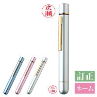この商品はです。 注文間違い注意! 一本あれば、2つの印鑑が押せる機能的ペン型印鑑です。 浸透訂正印(訂正するときに使用)、浸透ネーム印(認印などに使用)がボールペンサイズに収まっています。 いろいろな印鑑を使う方、書類をよく書く役職の方など様々なシーンで活躍します。 転勤の贈り物にも最適 ■本体サイズ:直径12x高110(mm) ■本体重量:13.5g ■材質:アルミ・真鍮 ■カラー:シルバー、ブルー、ピンク この商品は発送に10〜14日かかります</font> 基本的には宅配便発送ですが、こちらの商品は 注文総量によりメール便の配送方法(ポスト投函)で 配送される可能性があります。 (送料は変わりません)※メール便・宅配便の指定希望もできません。