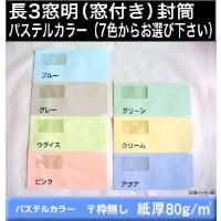 長3封筒 窓付 パステルカラー封筒 選べる7色 紙厚80g/m2 500枚 長形3号 窓あき 窓明き 窓付き A4横三つ折 2,750円 |
