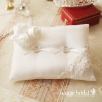 挙式のときに、お二人の指輪をのせておく…、 リングピローは、結婚式にはかかせない大切なウェディングアイテムです。 ハグオリジナルのリングピローは、 オフホワイトのサテンの生地をベースに使用し、可憐ながらも、上品な女性らしい雰囲気に仕上げました。 当店一番人気のブライダルインナー“シンプルリュクスシリーズ”とお揃いのバラのモチーフレースを使用。 ひとつひとつ手作りのバラの花もアクセントとなり、大切な1日にふさわしい上品なリングピローです。 完成品なので、忙しい花嫁さまにもおすすめです。 商品スペック ・素材レース、パール、リボン、サテン、綿 ・サイズ約 縦16cm×横20cm ・付属品クリアケース |