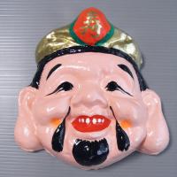 お馴染みのひょっとこ面です。 安来節のドジョウ掬い踊りや田楽「でんがく」(豊作を祈る郷土芸能)などに登場します。 口をすぼめて曲げたお茶目なひょっとこのお面は、ユニークなお飾り(インテリア)としてご利用ください。 ポリエステル製紐付。 厚紙を型成形して薄和紙を貼り、滑らかで自然な顔のライン(凹凸)を出しました。 熟練の職人が1点1点描いたデラックスタイプです。 ※手作り商品ですので、柄行やサイズ等若干のばらつきがあります。 目の部分は孔になっており、市販のゴム紐に付け替えれば、実際に顔にかぶることができます。 スタンダードひょっとこ面(nmd-9058-to)もございます。 ■素材 型成形厚紙・薄和紙 ※紐付 ■サイズ 巾14cmXタテ20.5cm×厚さ6cm ■重さ 60グラム ■色柄 手拭い:白地・紫紺 顔:肌色・柿色 シワ:茶 眉毛/鼻毛:黒 目:黒・白・茶 口:茜色 |