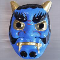 節分の豆まきやお芝居・学芸会の他、全国各地の鬼剣舞(おにけんばい)・鬼祭り・鬼行列などにご利用いただいている青鬼面です。 怖い形相で災厄を追い払うことから、魔除け用の室内インテリアとしても人気があります。 青鬼面の目の部分は孔になっており、ゴム紐付きですので実際に顔にかぶることができます。 ちなみに、豆を撒く際には、通常「鬼は外、福は内」と掛け声をかけますが、地域や神社によってバリエーションがあります。 鬼を祭神または神の使いとしている神社、また方位除けの寺社では「鬼は外」ではなく「鬼も内(鬼は内)」とする場合があります。 また、家庭内での豆まきでも「鬼」の付く姓(比較的少数だが鬼塚、鬼頭など)の家庭では「鬼は内」の掛け声が多いそうです。 ※手作り商品ですので、柄行やサイズ等若干のばらつきがあります。 赤鬼面(nmd-9058-i)もございます。 ■素材 紙パルプ(紙粘土) ※ゴム紐付 ■サイズ 巾17cmXタテ(青鬼面の角の先からアゴまで)22cm ■重さ 80グラム ■色柄 顔:青 シワ:赤 髪/眉毛/ヒゲ:黒 角/目/口/牙:ゴールド |